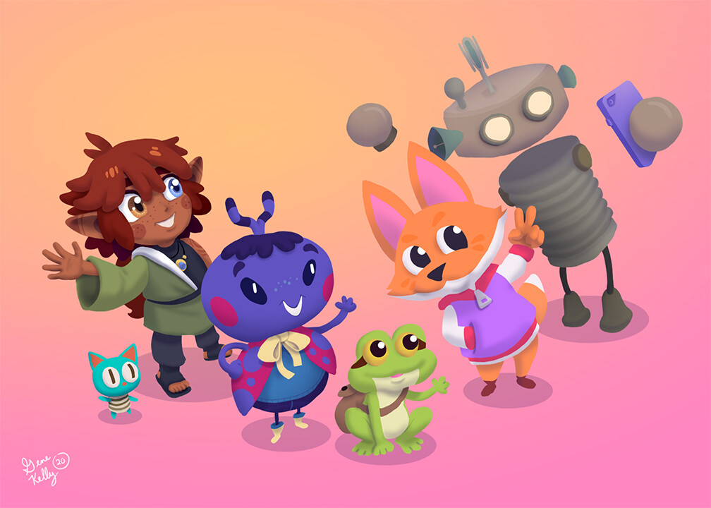 Fan art for some of the friendly characters featured in the Wholesome Direct videogame showcase, organized by those super lovely humans at Wholesome Games.